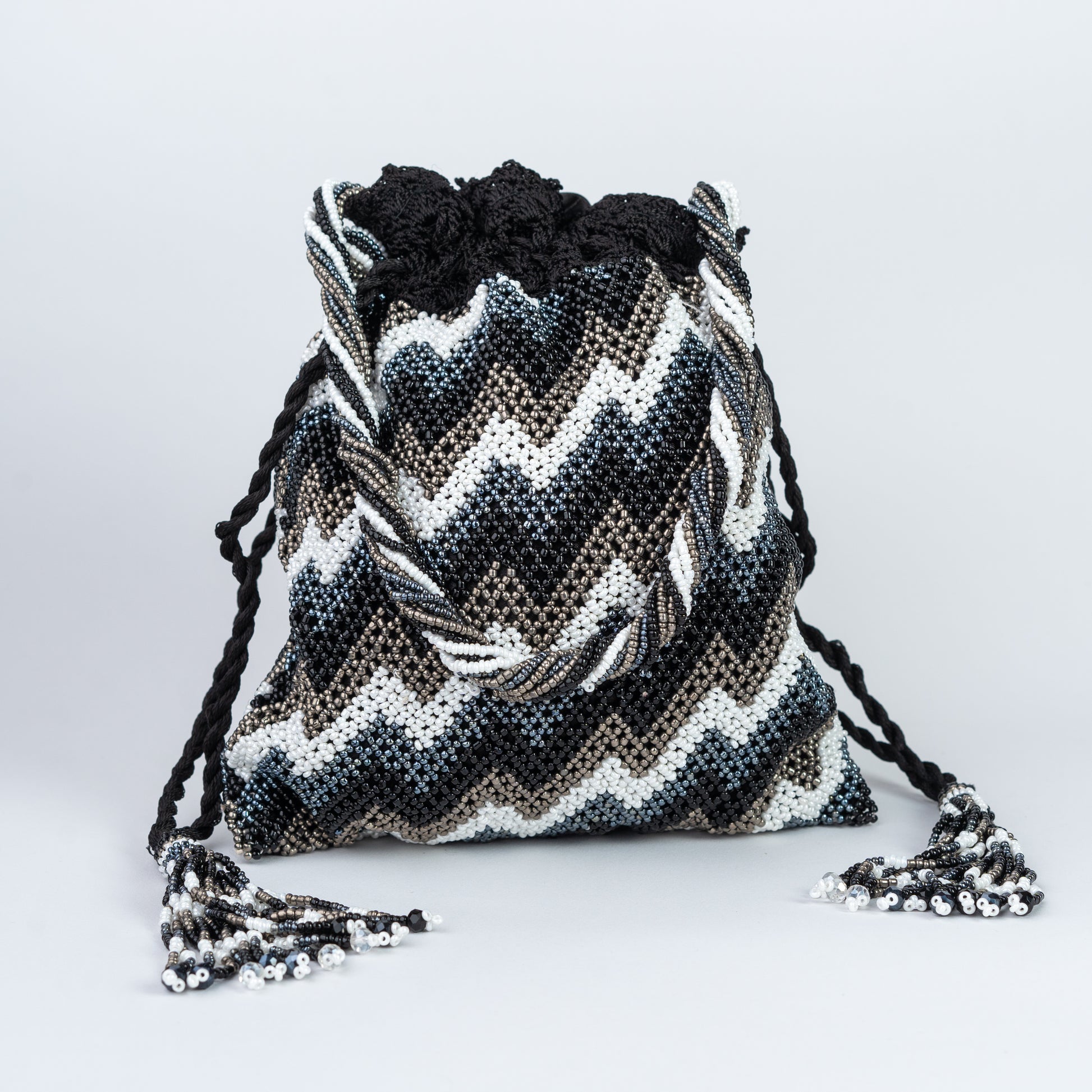 Black & White Crochet & Beaded Potli