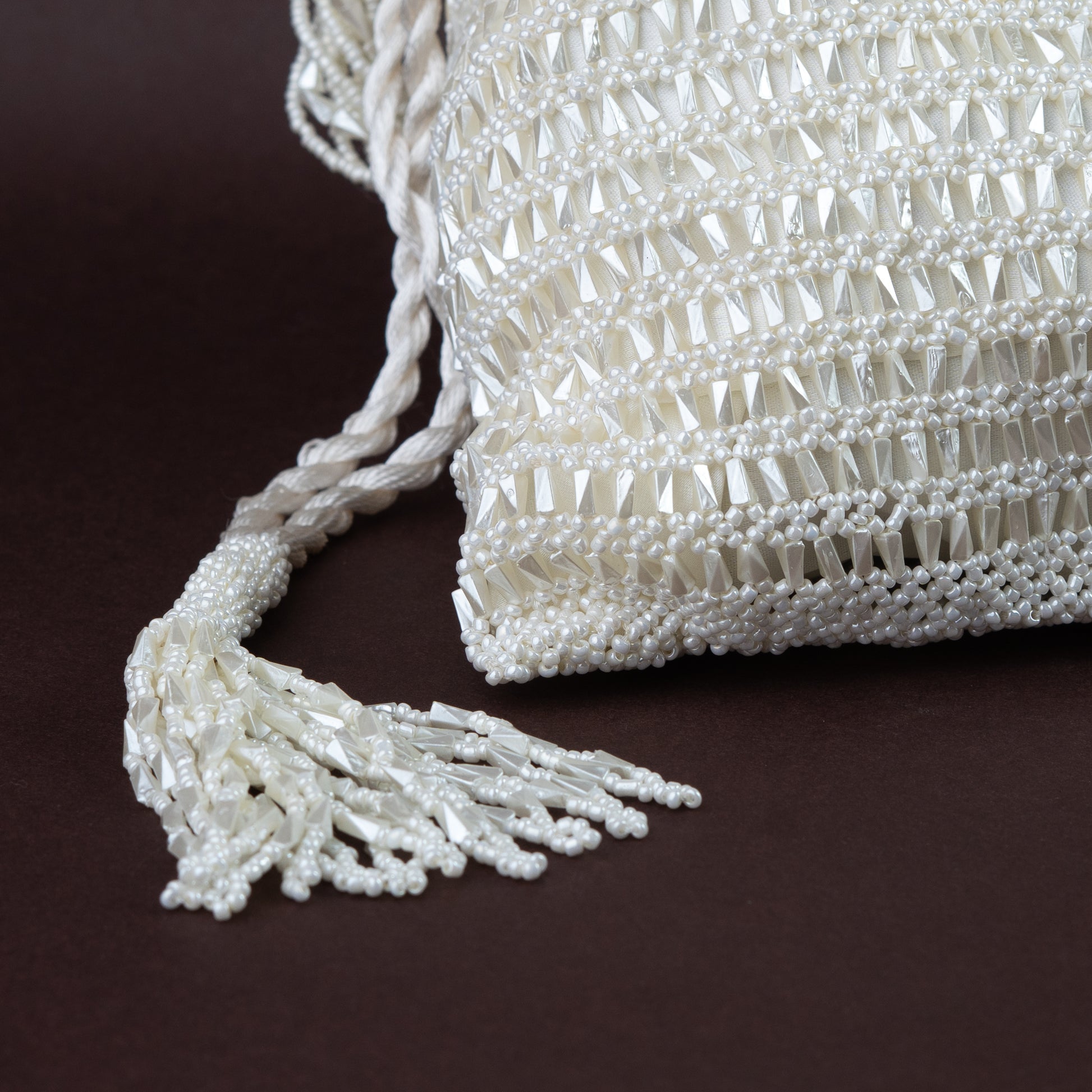 Handcrafted White Crochet & Beaded Potli